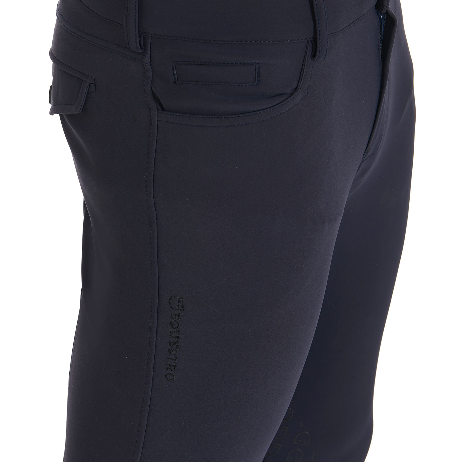 Ideati con tasche frontali, posteriori e con grip in silicone, con logo Equestro, sulla parte interna del ginocchio. Tale inserto assicura stabilità e aderenza alla sella garantendo, allo stesso tempo, una massima libertà nei movimenti.