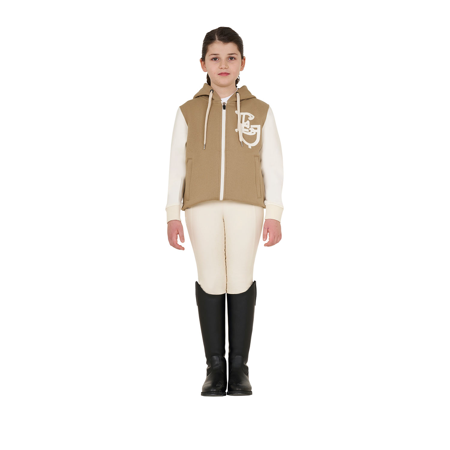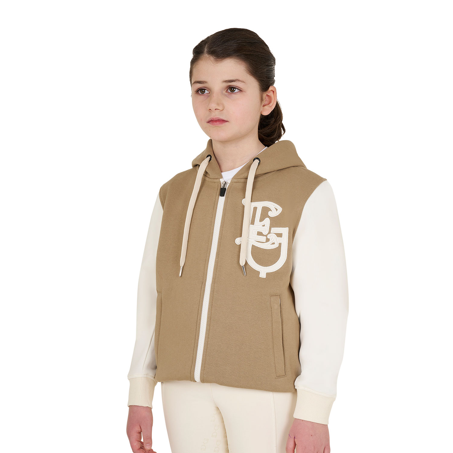 Felpa tecnica da bambina in morbido tessuto tecnico misto cotone, dal tocco casual arricchito da dettagli distintivi a contrasto.