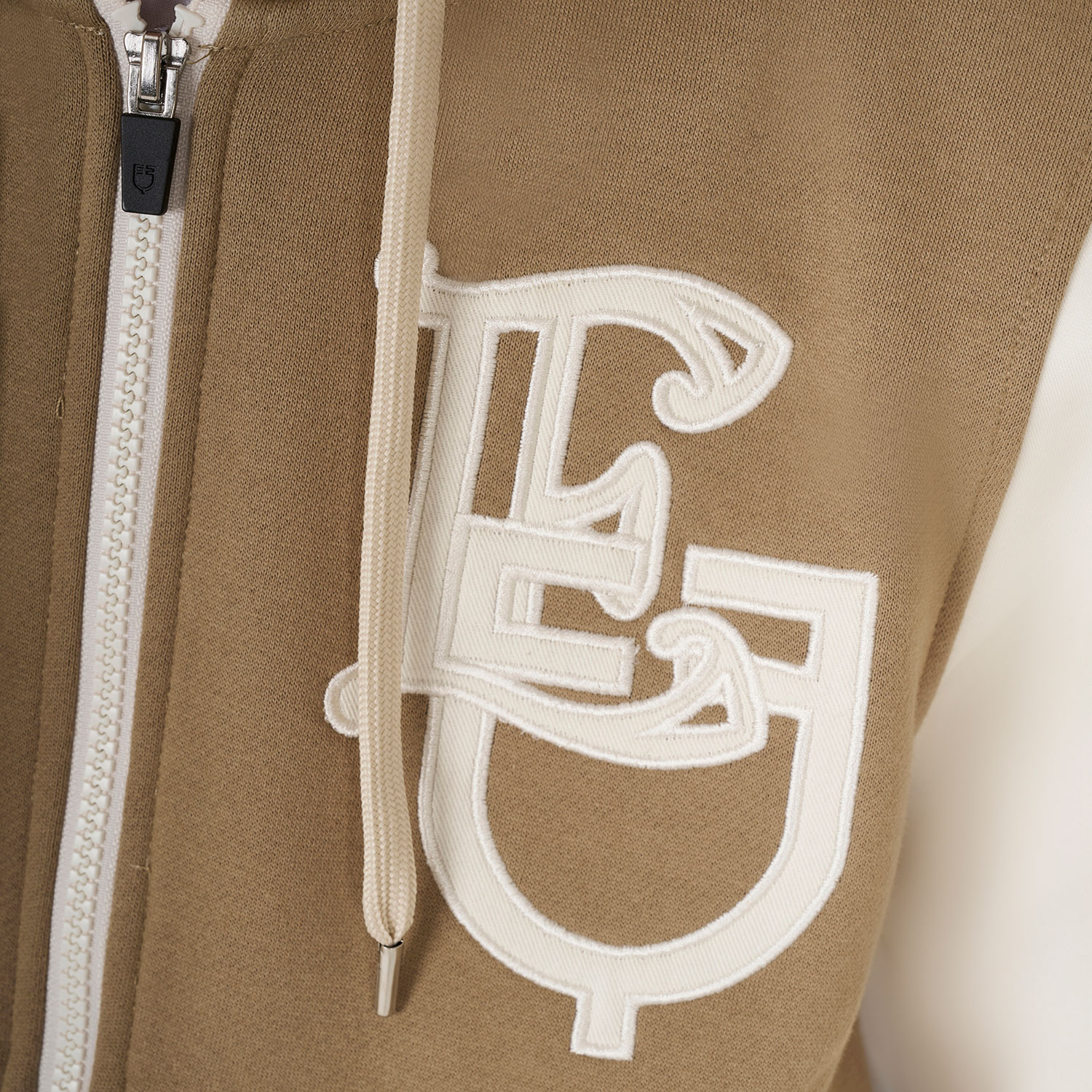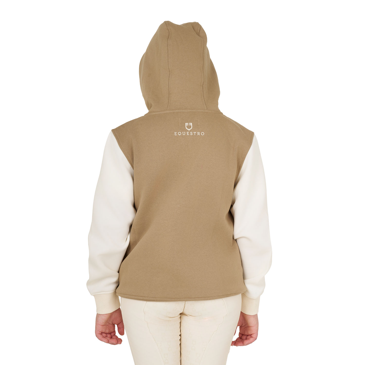 Questo modello con zip e cappuccio regolabile è impreziosito da polsini e estremità con elastico a costine e dal logo Equestro EQ stile college ricamata sul petto lato cuore antivento frontale che cattura lo spirito della collezione, conferendo un carattere unico.