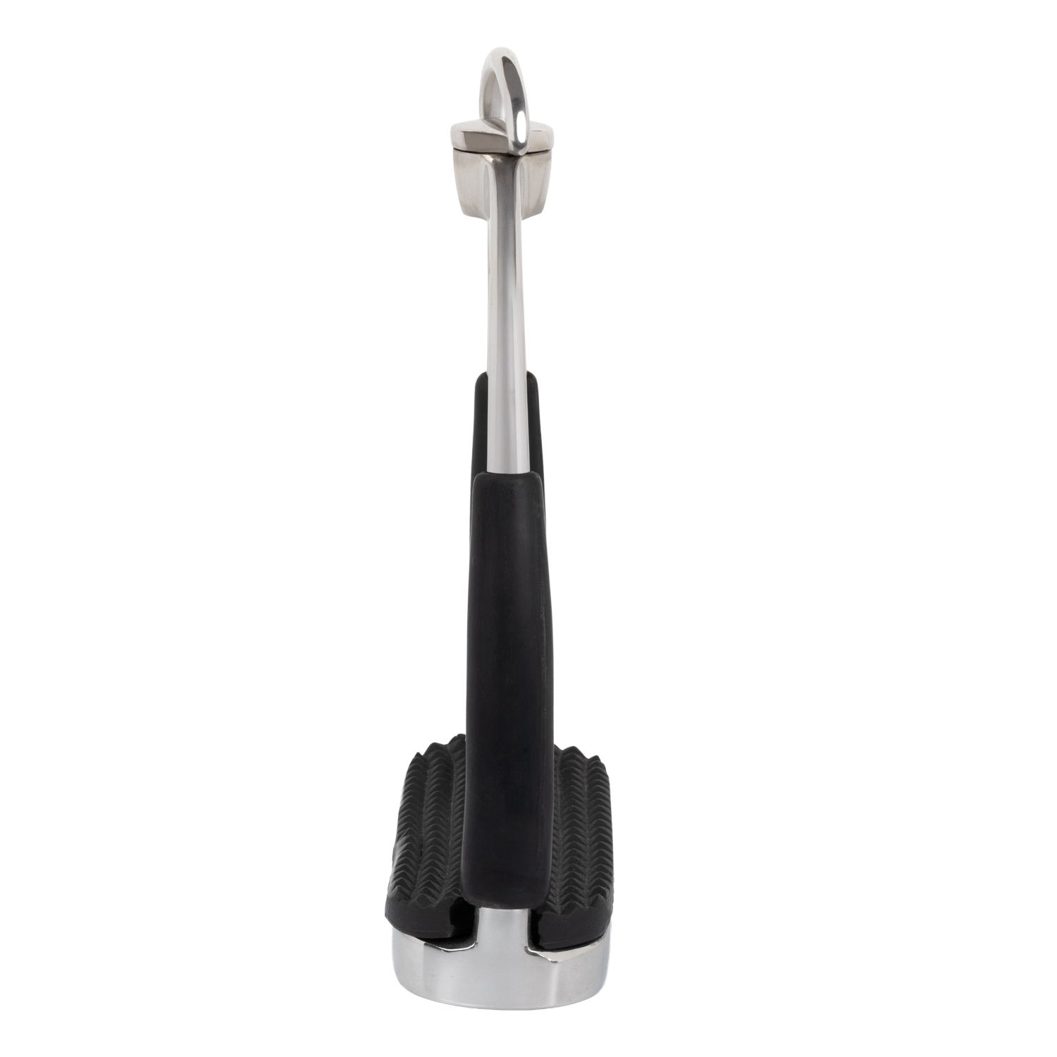 Il design della staffa garantisce; una migliore posizione delle gambe tramite l’occhiello regolabile a 0°, 45° oppure 90°, flessibiltà grazie alle snodature laterali ricoperte in gomma che facilitano la presa per la salita (con un semplice tocco del piede la staffa si piega delicatamente), stabilità garantira dalla pedana in gomma che assicura una funzione antiscivolo attutendo anche gli urti, pesantezza data dallo spessore della panca e resistenza per il corpo della staffa realizzata in acciaio inox.