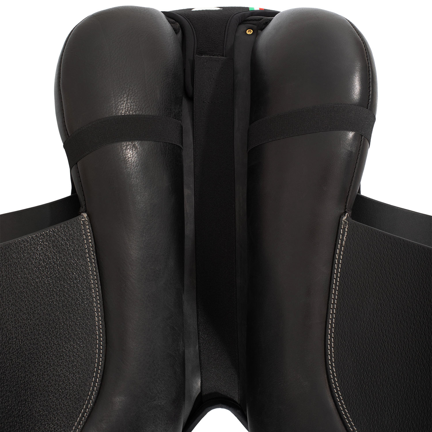 La cinghia elastica si aggancia ai cuscini, mantenendo l’assetto originale della sella. I cinturini con grip si fissano ai cuscini interni, conservando il design elegante.
