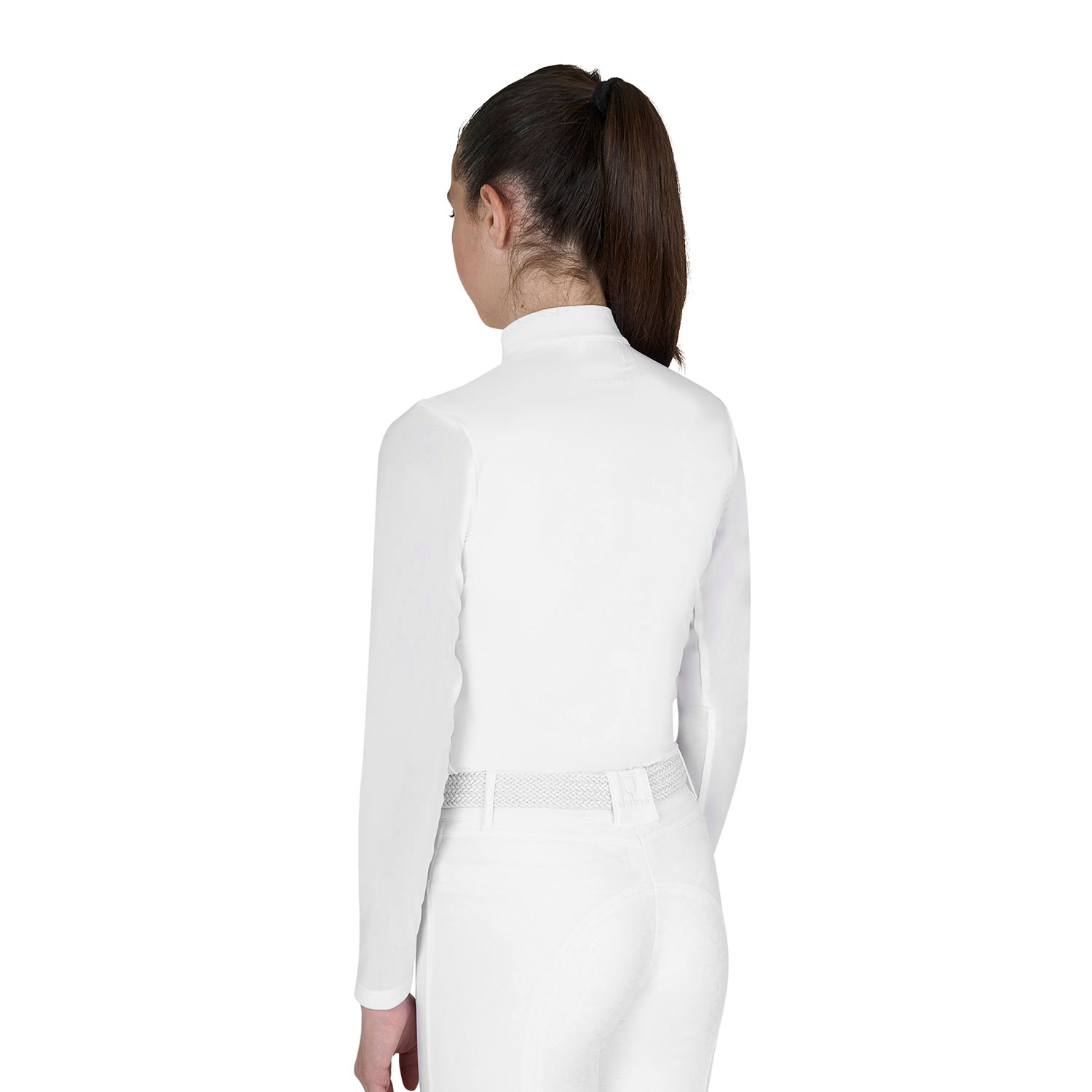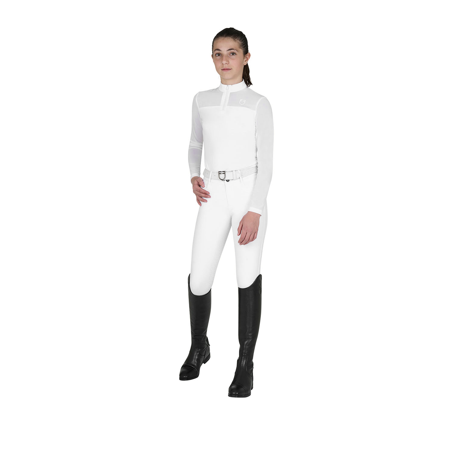Polo bambina slim fit a manica lunga realizzata in tessuto tecnico con inserti in tessuto micro traforato mesh sia sul petto che lungo tutte le maniche, in modo tale da facilitare l’evaporazione e la dispersione del sudore. Con le sue proprietà traspiranti mantiene la temperatura corporea ideale. Il taglio segue la linea del corpo senza fasciare eccessivamente. Un capo fresco, super performante con un’ottima vestibilità e una totale libertà dei movimenti. La polo presenta una chiusura frontale con zip antivento ed è inoltre impreziosita da logo Equestro in silicone posto lato cuore per un tocco all’ultima moda.