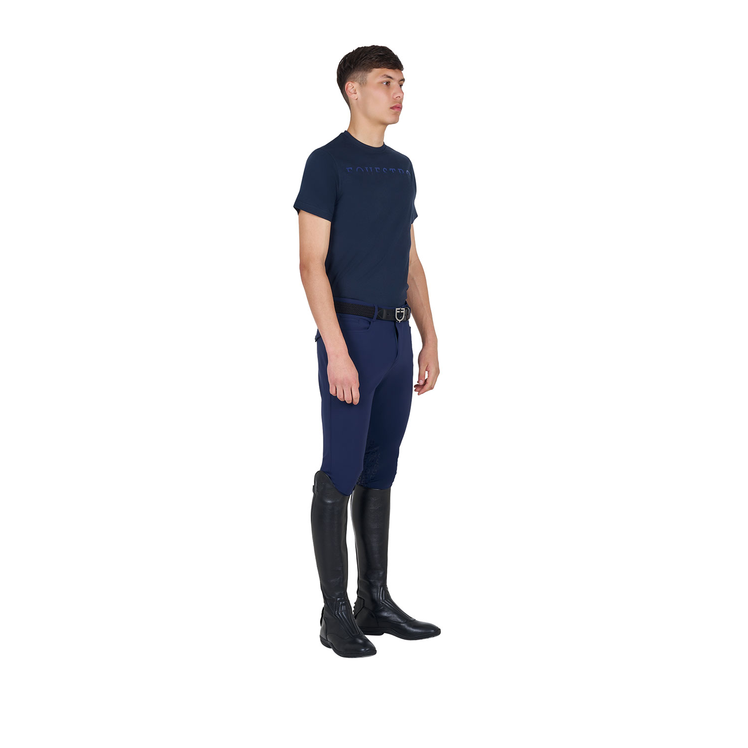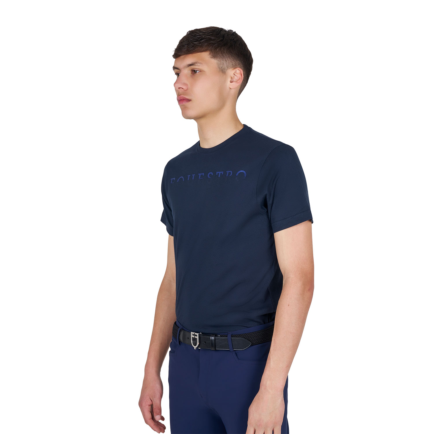 Il punto focale di questo capo è il logo Equestro realizzato tono su tono, posizionato al centro del petto.