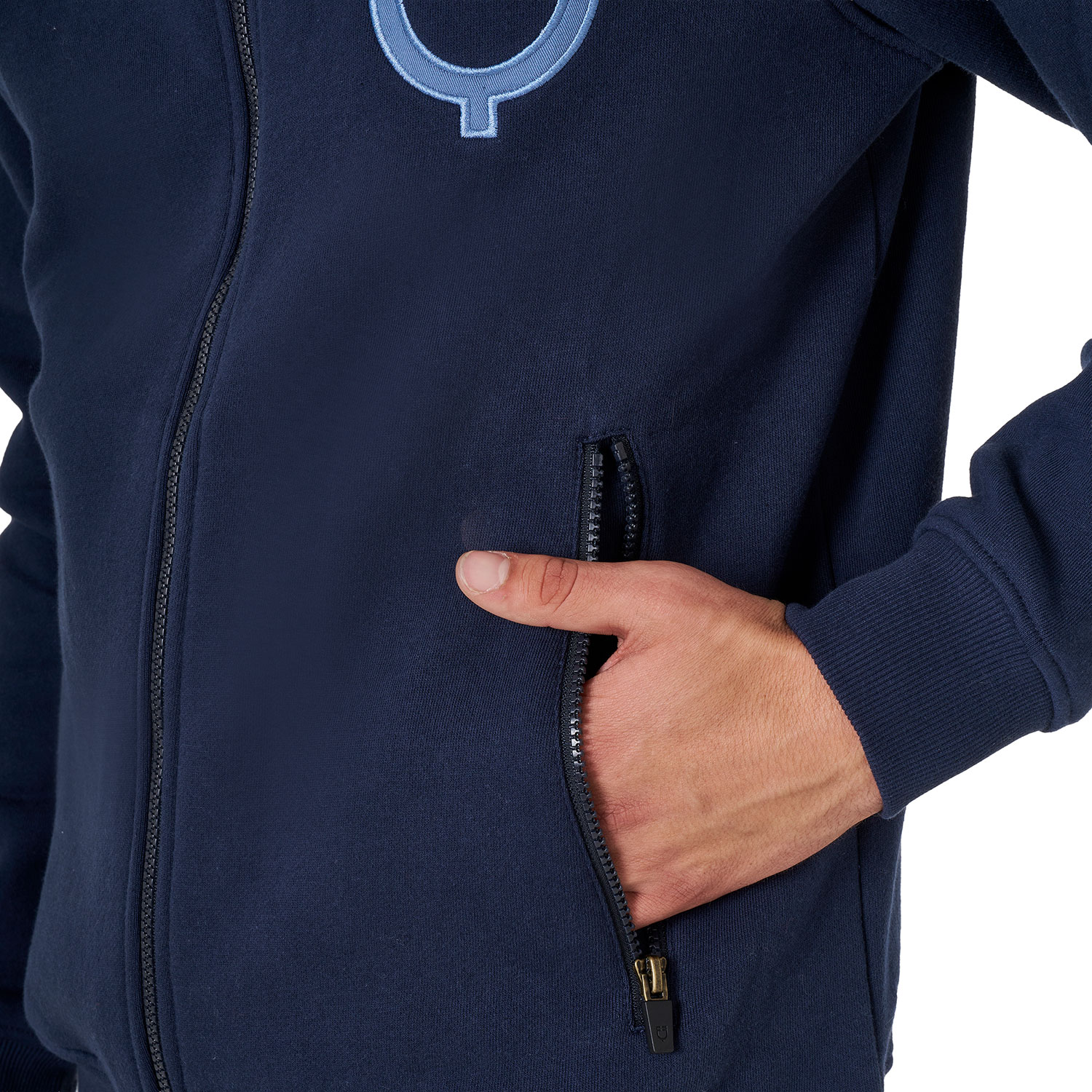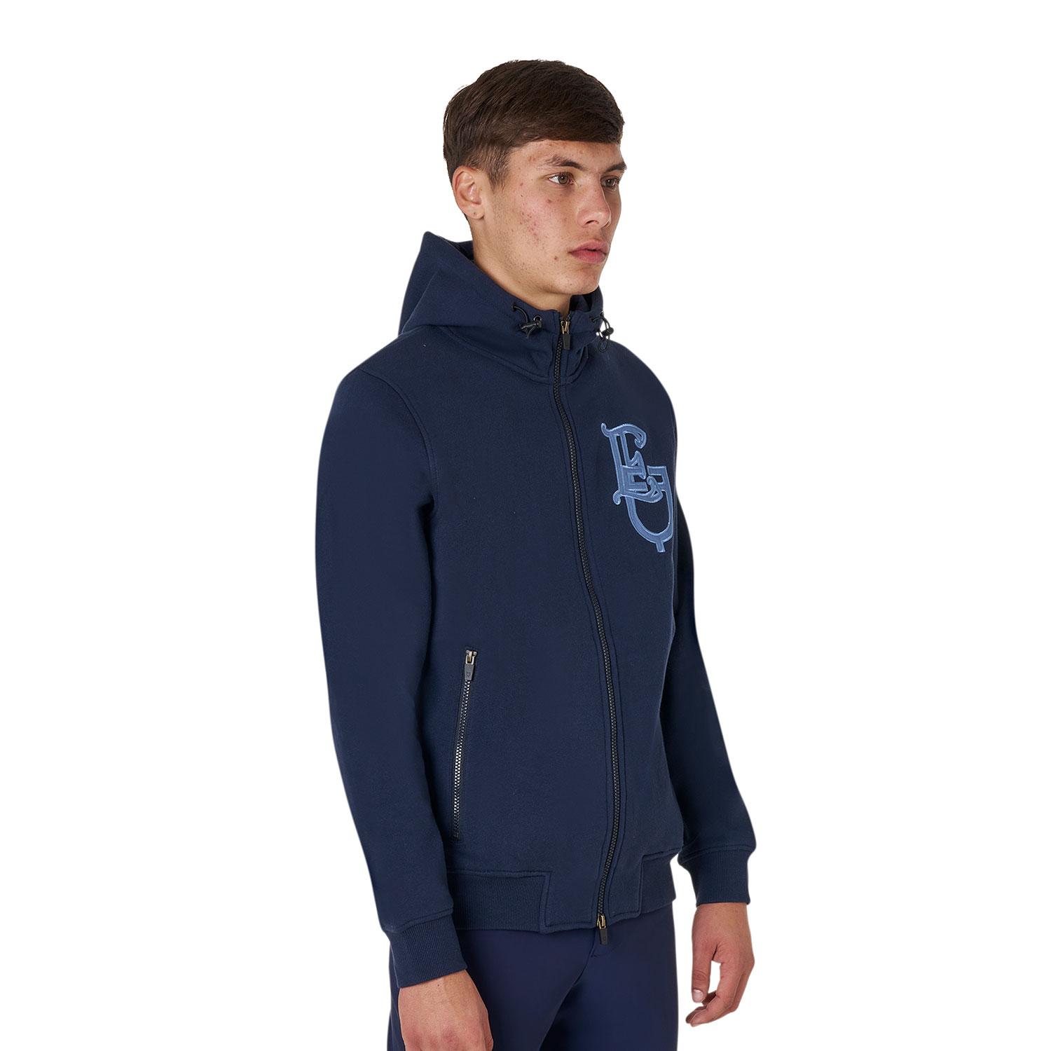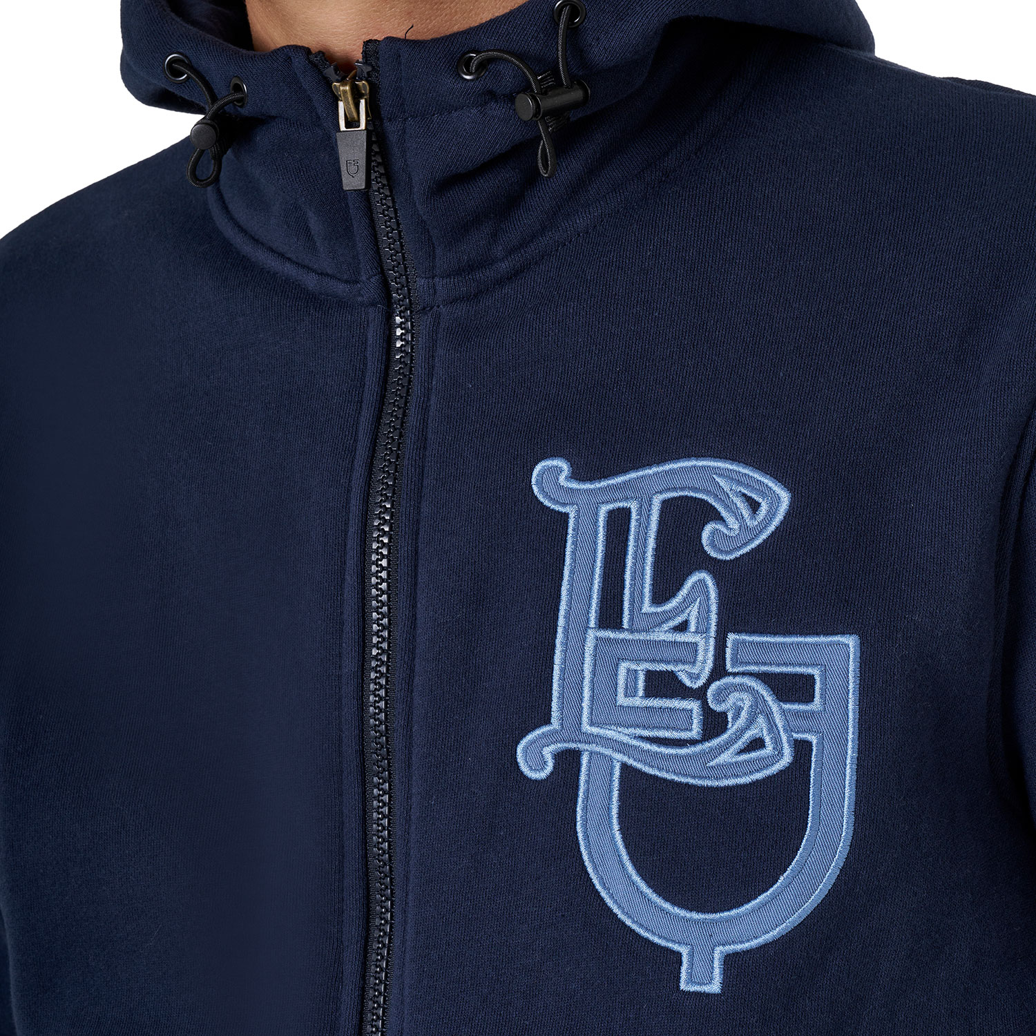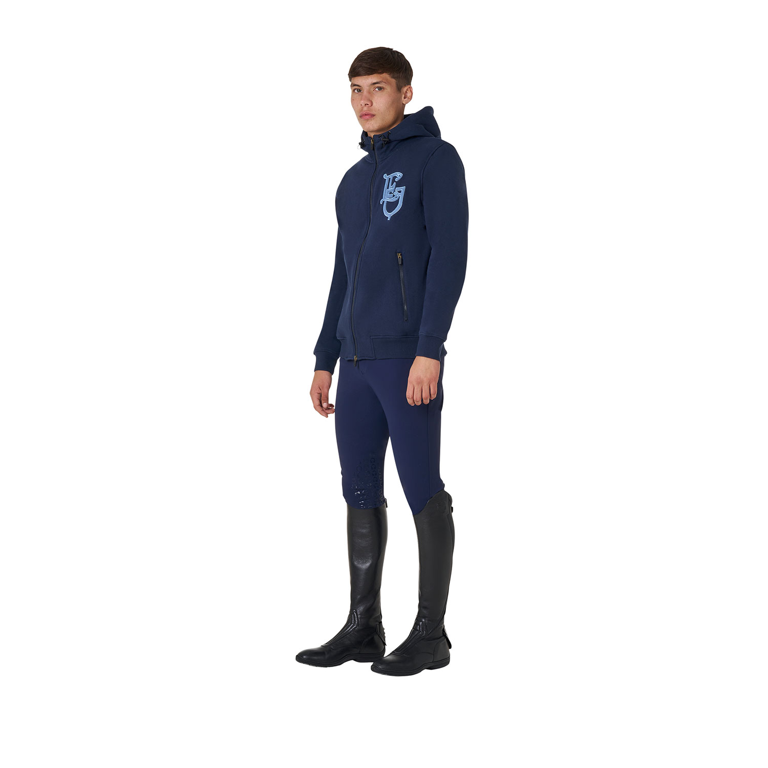 Felpa da uomo in tessuto tecnico misto cotone con cappuccio regolabile grazie alla presenza dei cordini, full zip e tasche laterali. Realizzata in morbido cotone felpato di alta qualità, offre una sensazione di morbidezza al tatto e un calore avvolgente, perfetto per le giornate più fredde.