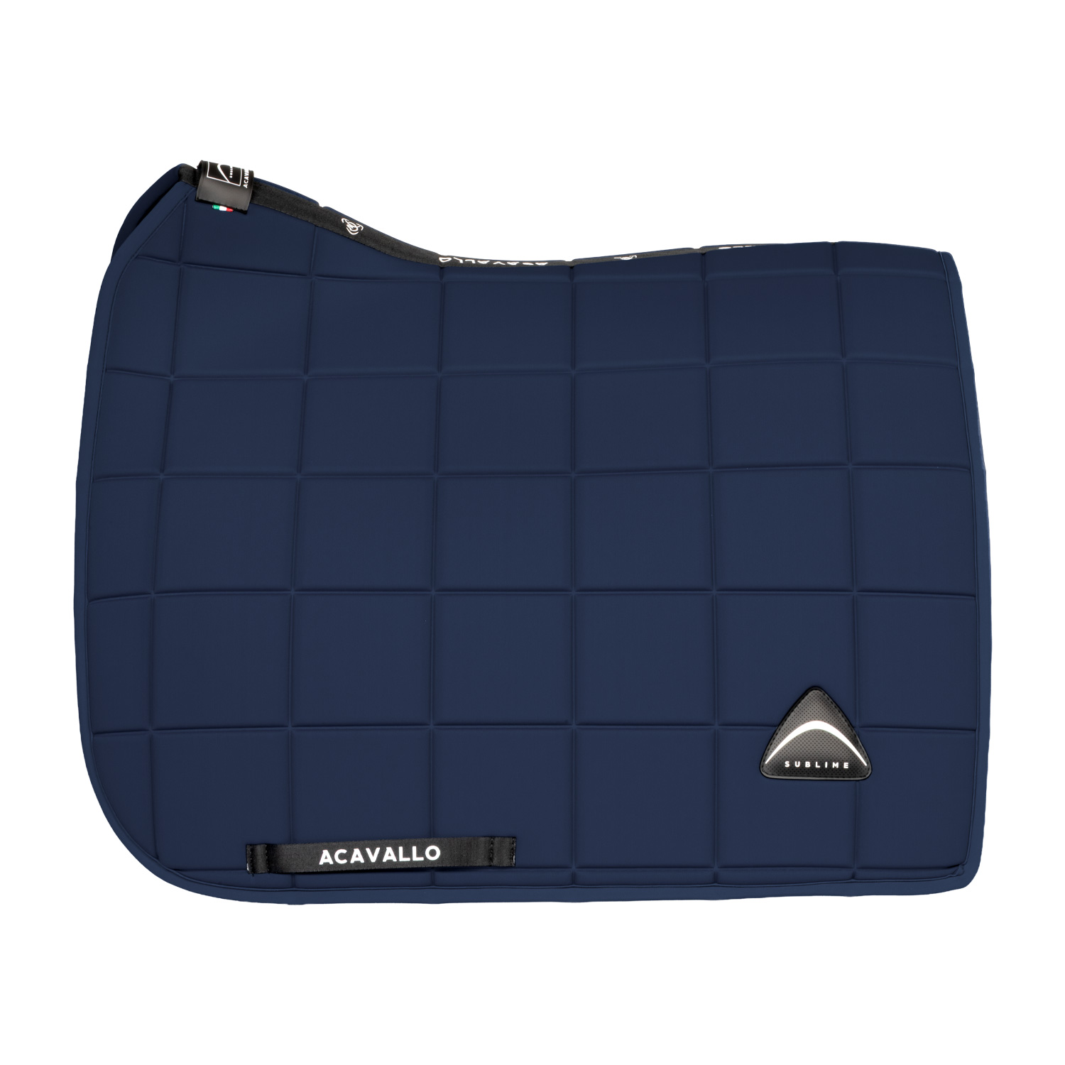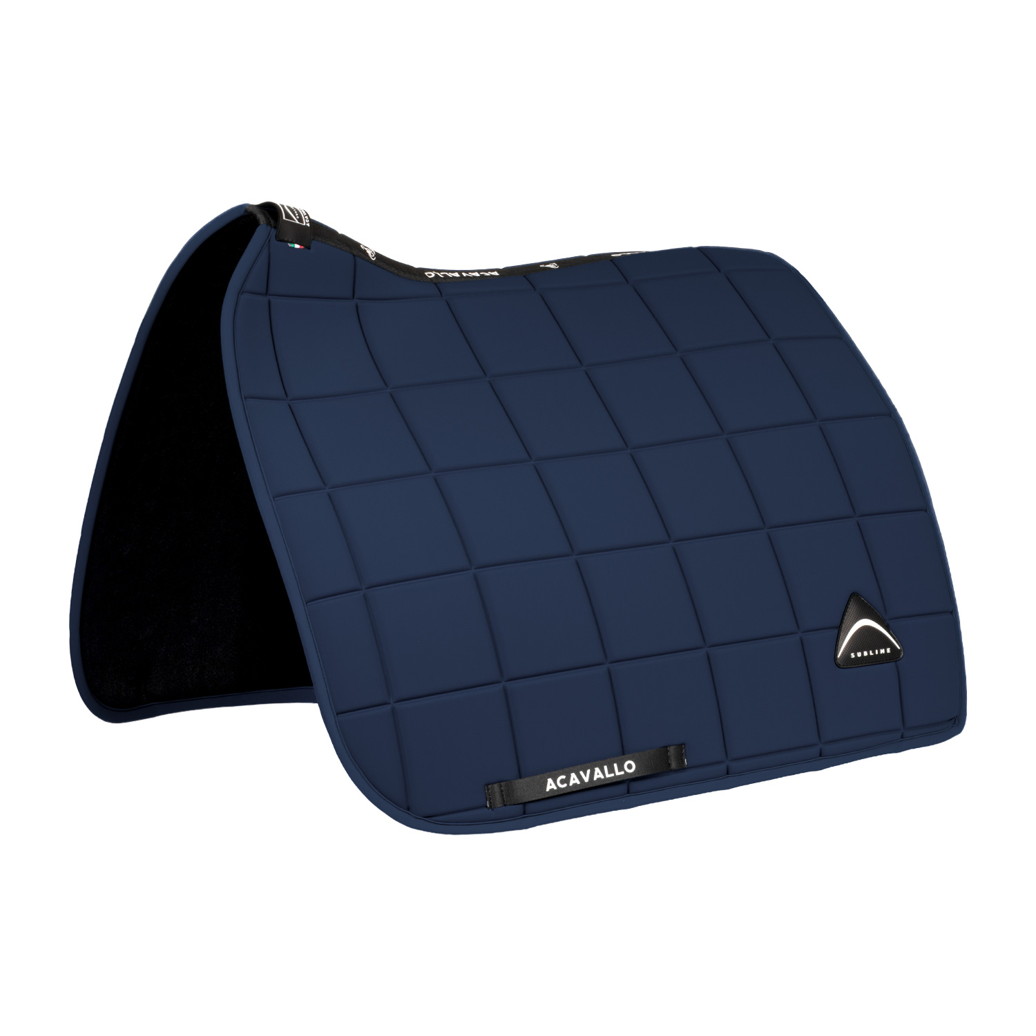 Il sottosella da dressage Acavallo® Sublime unisce materiali di alta qualità come tessuto tecnico e fibra di bamboo, alla lavorazione dettagliata e al design anatomico caratterizzato da motivo a quadri termoformato.