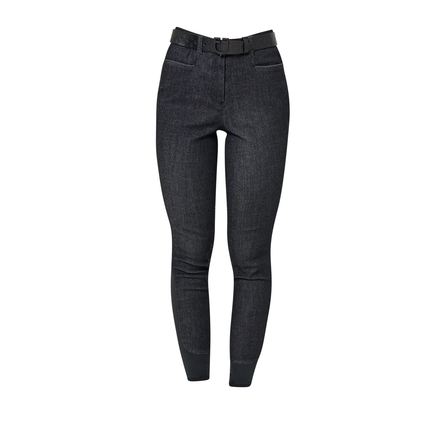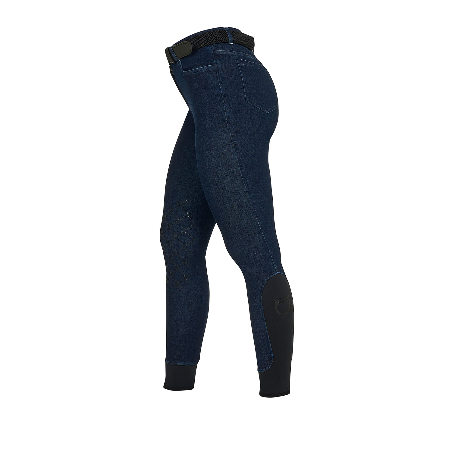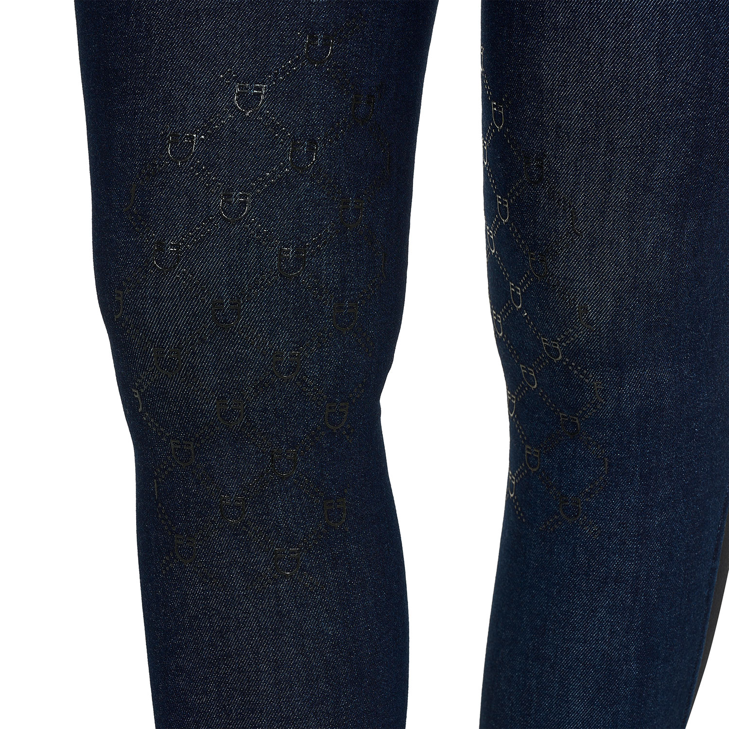 Il capo è caratterizzato da grip siliconato con motivo monogram, applicato per garantire una buona stabilità e un’aderenza efficace alla sella, senza compromettere la naturale elasticità del tessuto. Il design è completato da due tasche posteriori, funzionali e dal gusto classico, che valorizzano l’estetica ispirata al denim.